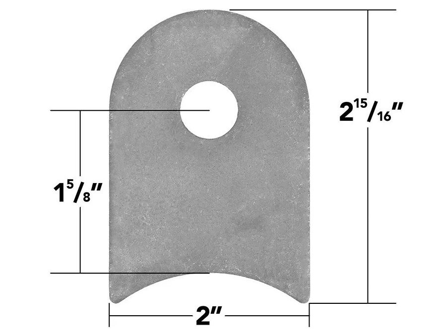 Weld On Flat Tab 3″ Cope (10 Pack)$46.33 Weld On Flat Tab 3" Cope (10 Pack) quantity Add to cart SKU: 180191-KIT Categories: Builder Parts, Gussets & Tabs Description Additional information Reviews (0) Description Our 3″ coped weld on flat tab is made from 1020 hot rolled steel, is a beefy 1/4″ thick, and is designed for a 9/16″ bolt. The width is 2″ and the overall height is 2-15/16″. The center of the hole is is 1-5/8″ from the top of the cope, which is meant for 3″ tubing. Sold in packs of 10, shipped raw and lightly oiled. Ideal for seat tabs, seat belts tabs, and other tabs for general use. Additional information Weight 4 lbs Dimensions 8 × 8 × 4 in Reviews There are no reviews yet. Be the first to review “Weld On Flat Tab 3″ Cope (10 Pack)” Cancel replyYour email address will not be published. Required fields are marked *Your rating * Rate… Perfect Good Average Not that bad Very poor Your review *Name * Email * Related products Gussets/Gussets & TabsGusset Corner Relief 90.0 Degrees 3.0 Inch 2-Hole Trail Gear $5.81 Add to cart Gussets & Tabs/TabsWeld On Coped Tabs Cope 10 Pack Trail Gear $38.92 Select options This product has multiple variants. The options may be chosen on the product page Builder PartsBCC Weld-On D-Ring Mount $42.00 Add to cart